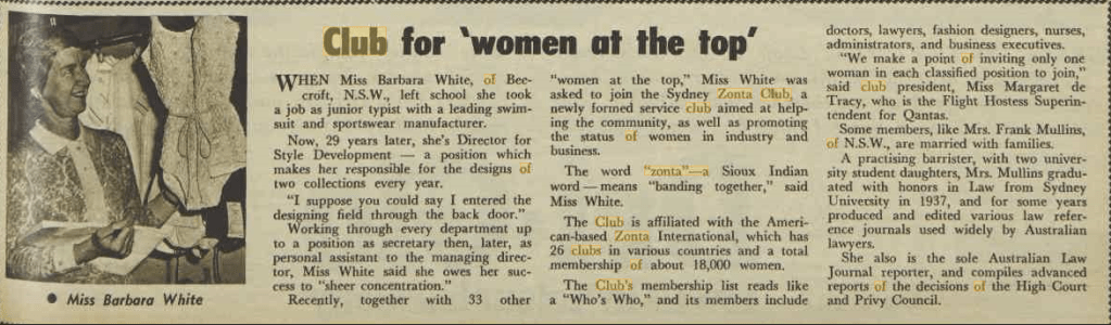 Within the Zonta Club of Sydney, was a Director in 1975/76 and was the club Secretary in 1977/78. She was a member of the club for 27 years. She and her husband Frank Mullin had two daughters. She passed away in 2010, aged 95.