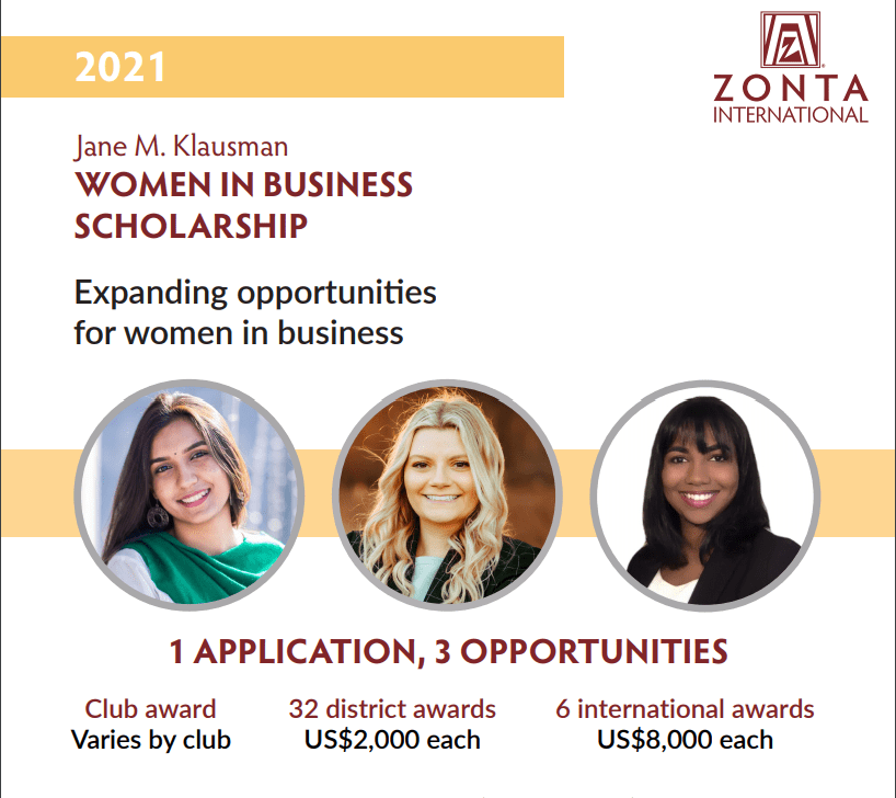 The Jane M Klausman (JMK) Women in Business Scholarship program is a Zonta International initiative aimed at helping women pursue undergraduate and master’s degrees in business management. As of December 2020, 21.2% of S&P 500 companies’ board seats are occupied by women, and just 6% of the companies’ CEOs are women, so there is still a way to go to gender equality.
