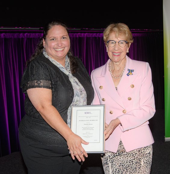 Each year, the Zonta Club of Sydney sponsors an award which is presented annually at the National Council of Women NSW “Celebrate Being an Australian” Luncheon. The club sponsors an award which is presented to a student from UTS in the Nursing and Midwifery School. This years awards were held in the Great Hall at UTS with the Patron of NCW NSW, Her Excellency the Honourable Margaret Beazley AC KC in attendance to present the awards. Our award this year was given to Narelle Brown, who is studying midwifery and is already working to build the network of Indigenous midwives and maternity workers as well as linking Indigenous nursing and midwifery students in online groups. She hopes to join an Aboriginal specific Midwifery Group Practice on graduation and to contribute to improvements in policy to address health issues affecting Indigenous women and their families during pregnancy and early childhood.