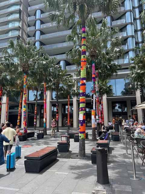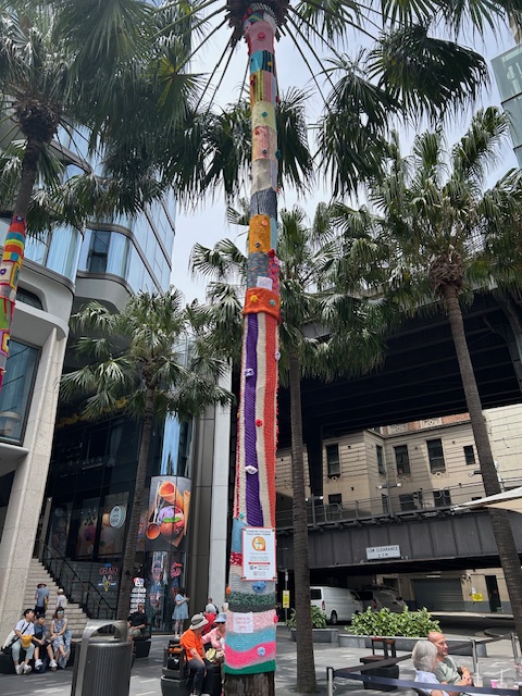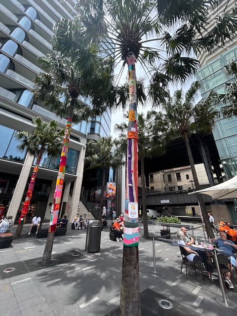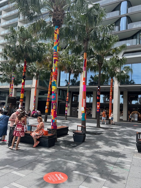 Are you going to be visiting Darling Harbour or the International Convention Centre this week? If so make sure to stop by the brightly coloured trees which have been “yarn bombed” to support the Zonta says YES to gender equality campaign.